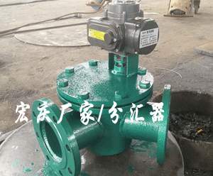 4、分匯器是一個三通閥,通過導向板的切換可使膠球進入需要清洗的一側凝汽器中工作。一般一臺機組需兩臺分匯器,其進口通徑為DN100,分配口為DN89,膠球投用時可通過窺視窗觀察運行情況。FH型分匯器(清潔海綿膠球切換三通管閥)